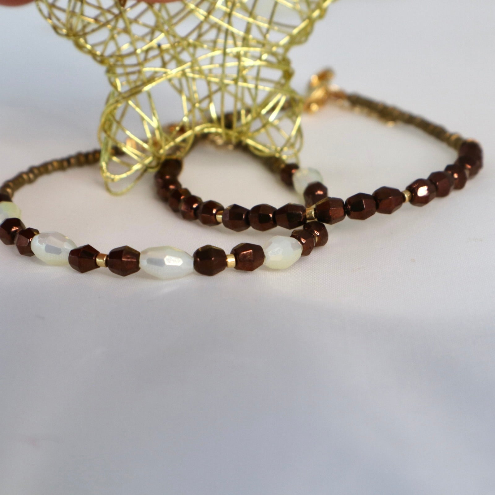 Delicate , sparkly bronze crystal bracelet.
