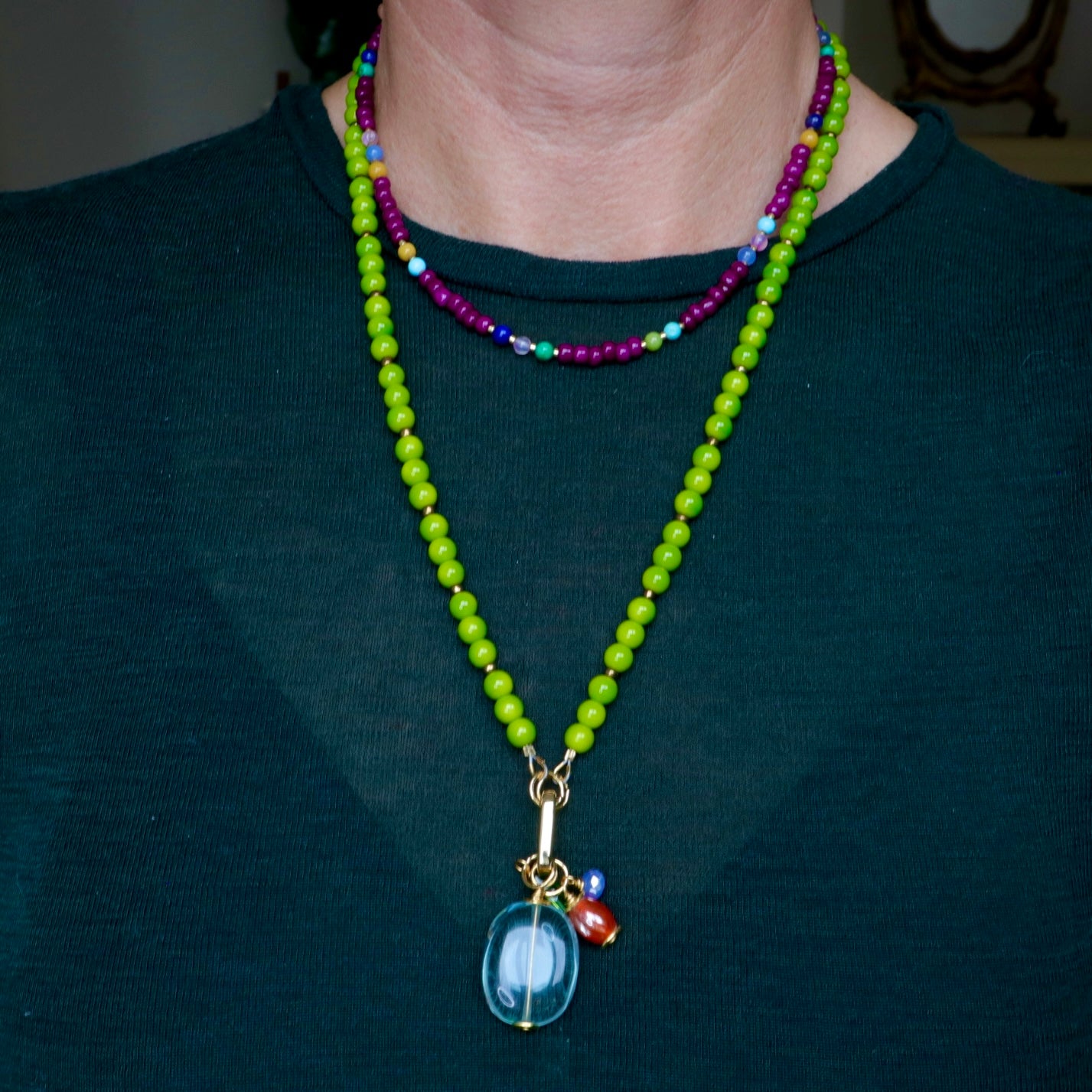 Wear without the charms for a different look . Layer it up with beads and gold chains .