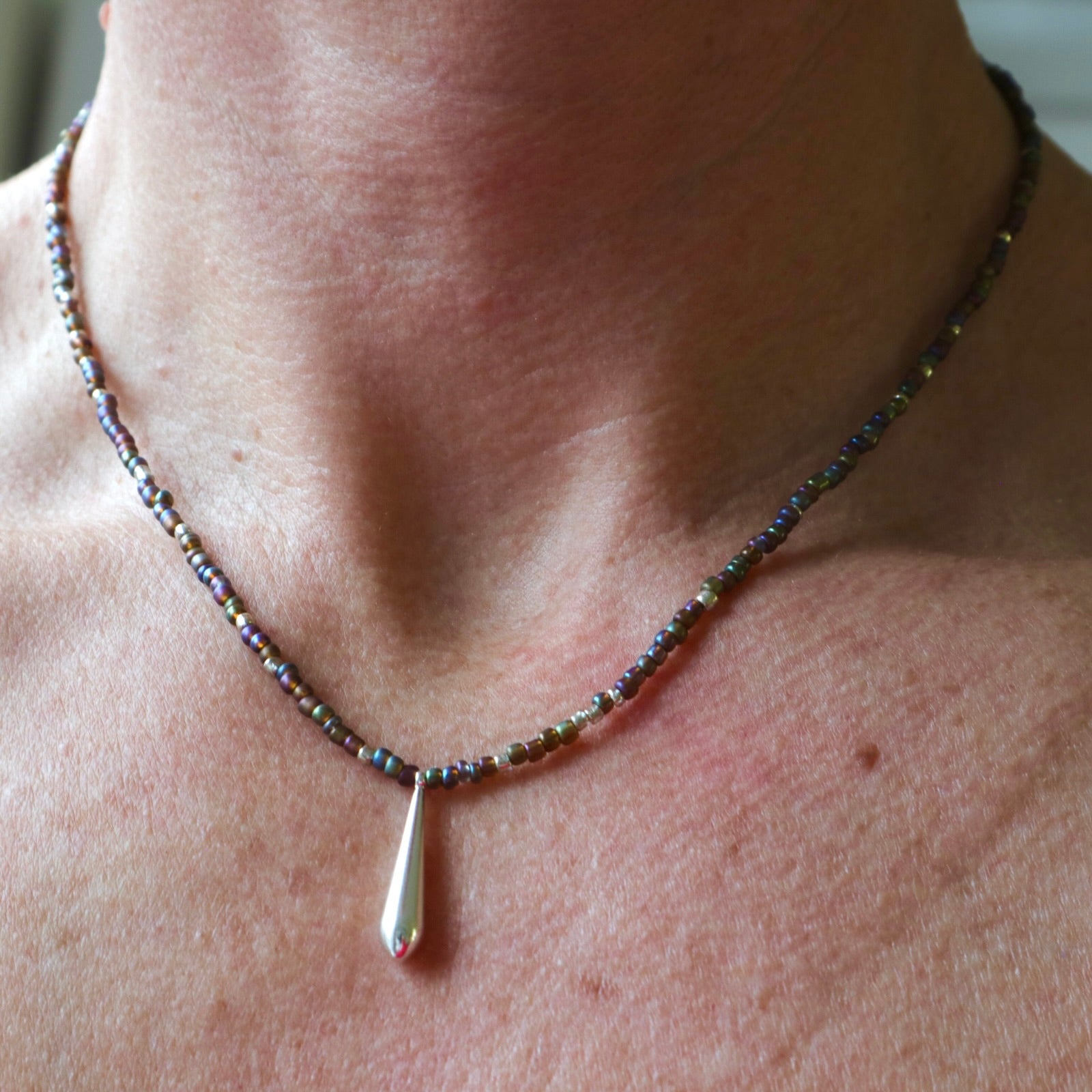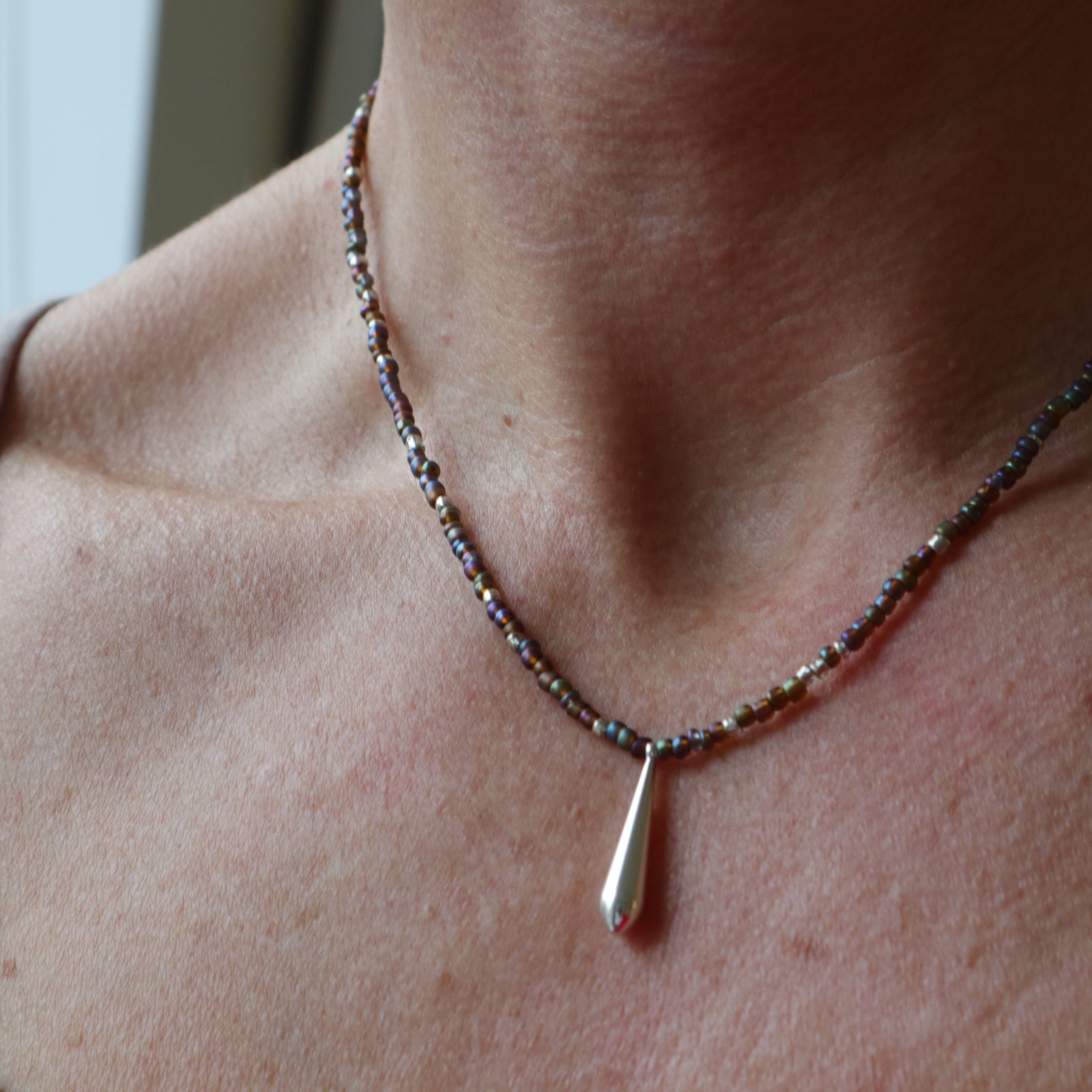 Elegance design of silver teardrop shaped with sea beads combined in silver bronze blues