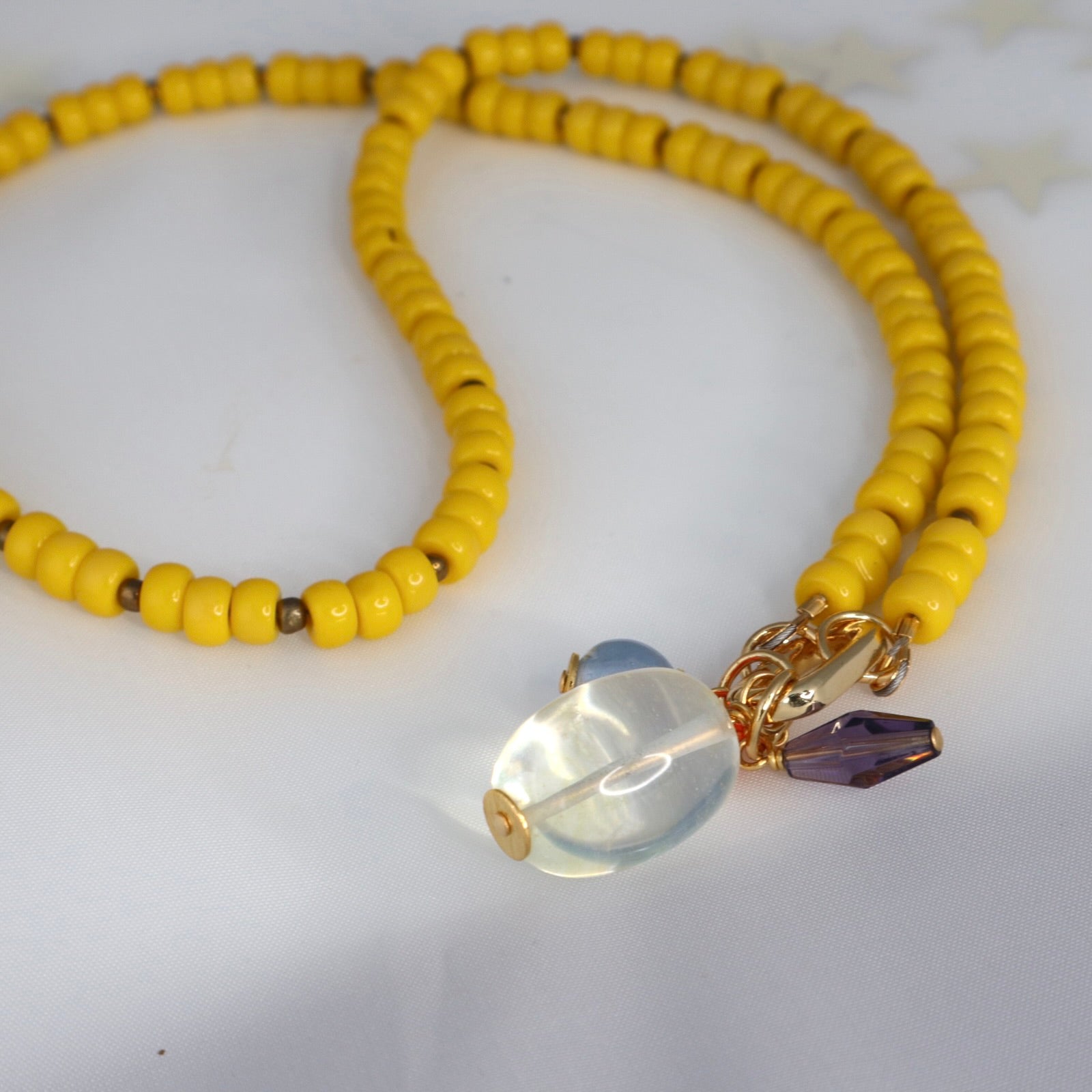 Yellow Beads featuring a gold rectangular charm Clasp .