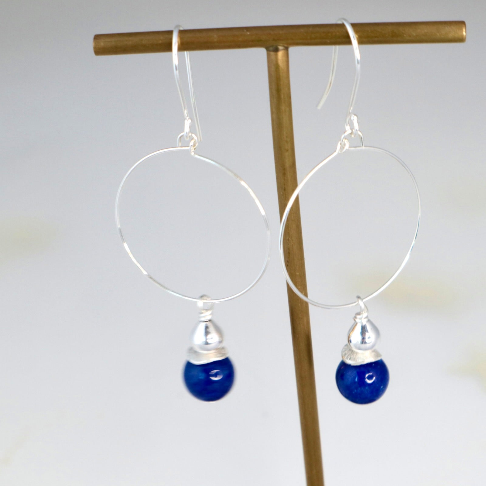 Add a touch of luxury to your wardrobe with these Lapis Lazuli Hoop Earrings